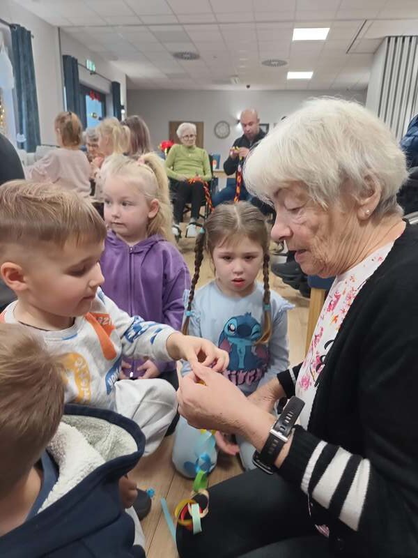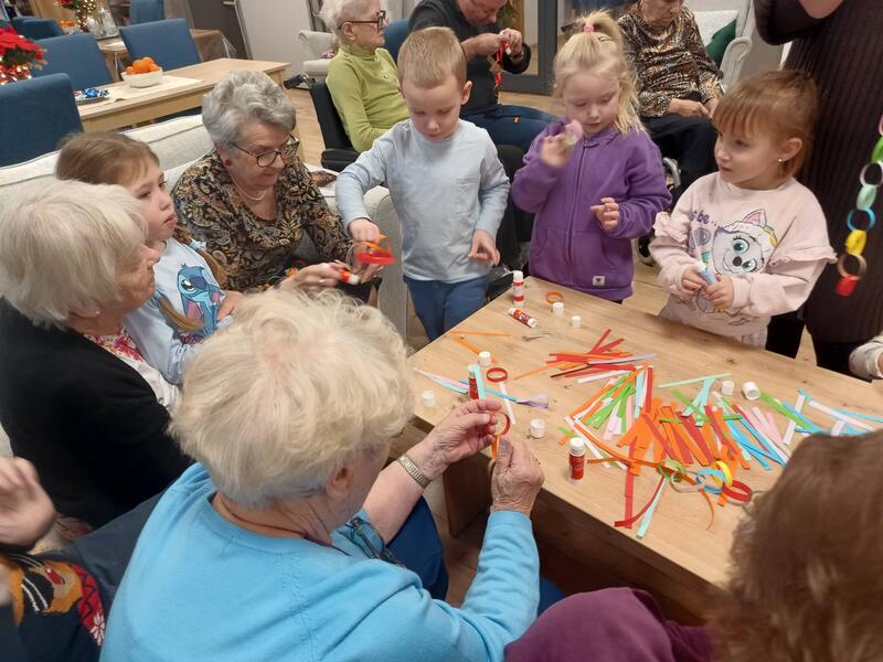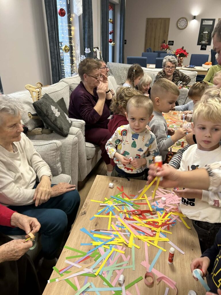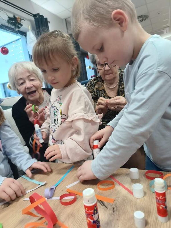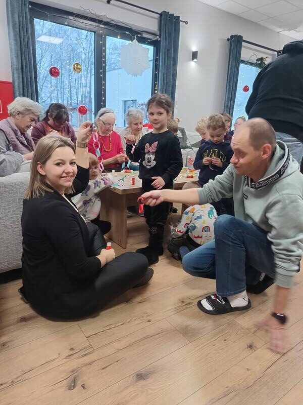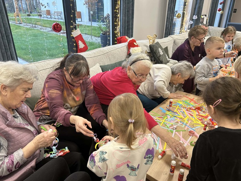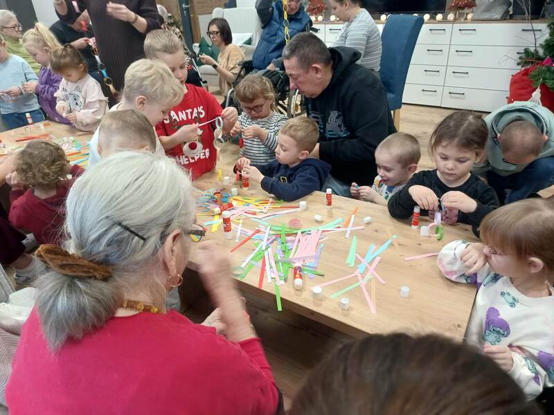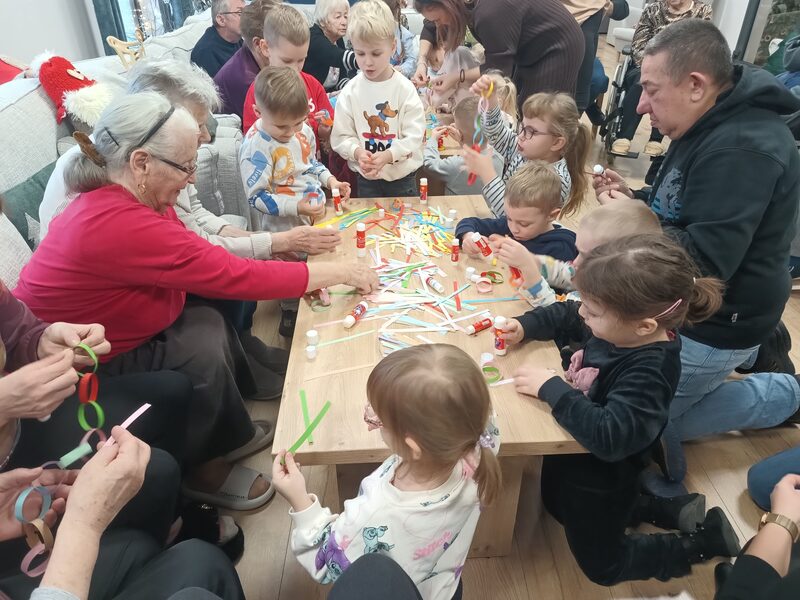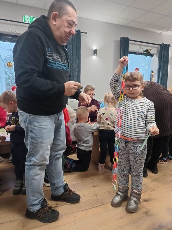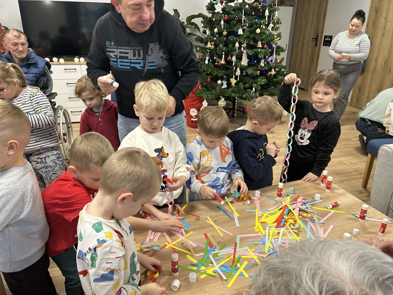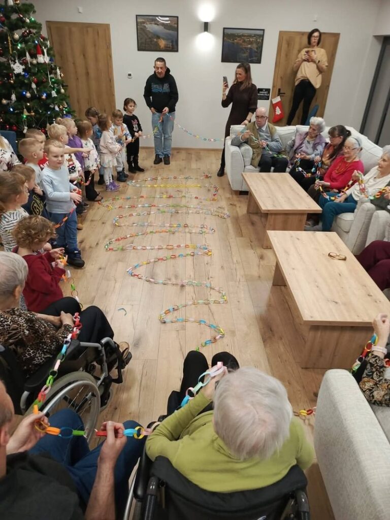 Przedszkolaki kolejny raz odwiedziły Centrum Opiekuńczo Mieszkalne, wnosząc ze sobą radość, energię i dziecięcy entuzjazm. Wspólnie z seniorami stworzyliśmy najdłuższy łańcuch na choinkę. Podczas spotkania nie zabrakło śmiechu, rozmów i wzruszeń. To wyjątkowe spotkanie pokoleń pokazało, jak wiele mogą sobie nawzajem dać, dzieci swoją spontaniczność, a seniorzy ciepło i życiową mądrość. Razem stworzyliśmy coś więcej niż świąteczną ozdobę, stworzyliśmy piękne wspomnienie.