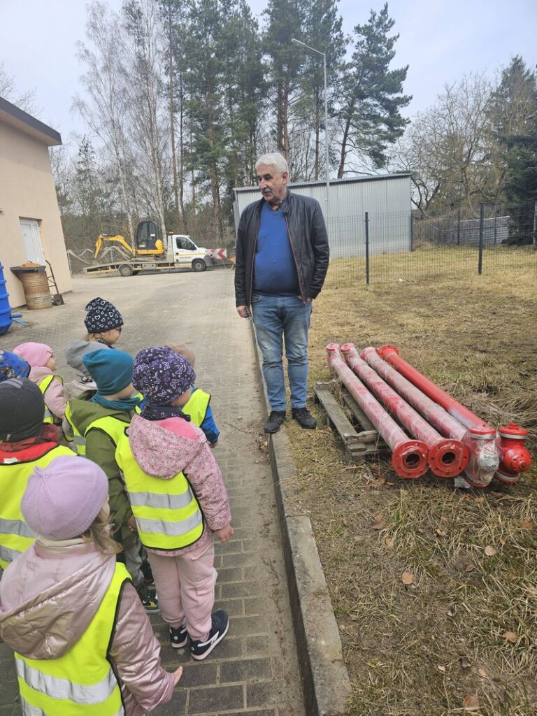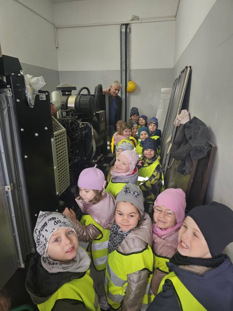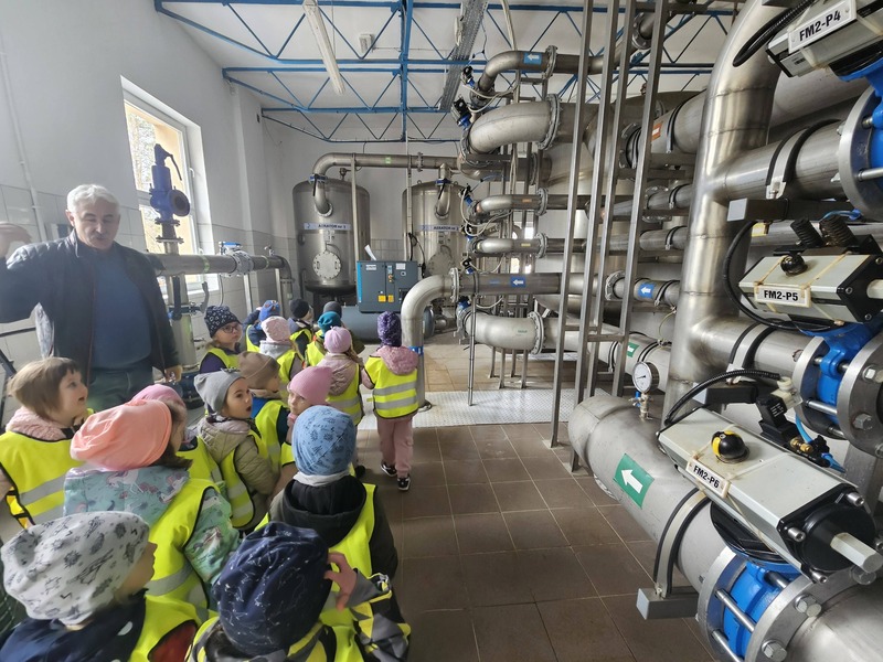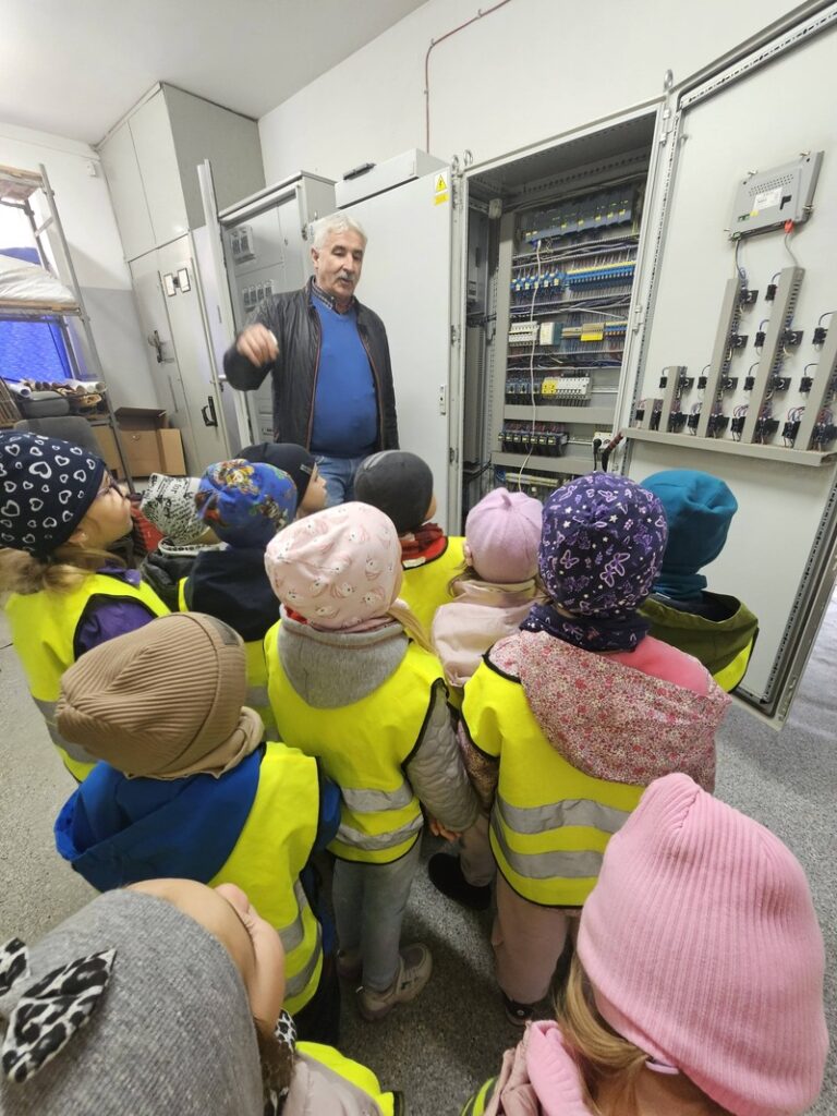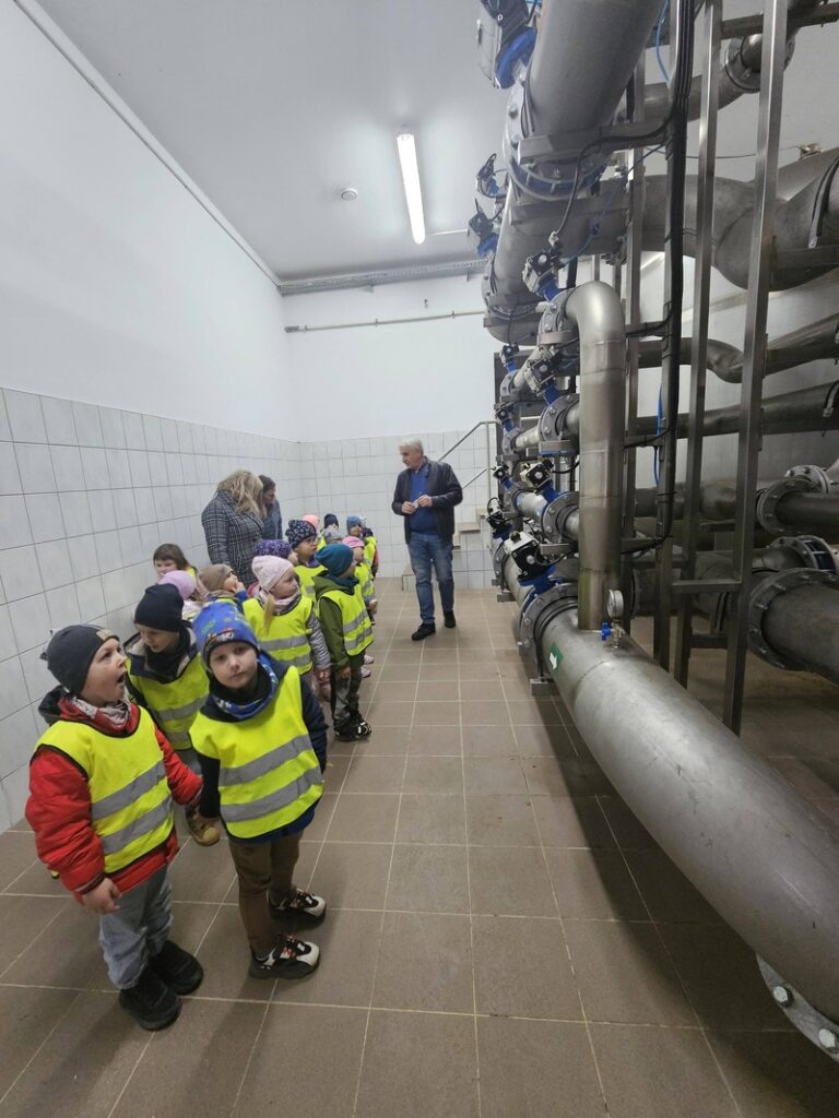 W ramach obchodów Światowego Dnia Wody grupa Elfiki wybrała się na niezwykle ciekawą wycieczkę do Zakładu Gospodarki Komunalnej – wydziału wodociągów. Pan Kierownik serdecznie nas powitał i oprowadził po terenie zakładu. Dzieci miały okazję zobaczyć, gdzie znajdują się studnie, z których pobierana jest woda. Dowiedziały się także, jaki proces musi przejść woda, zanim trafi do naszych domów i popłynie z kranu. Podczas wizyty przedszkolaki z dużym zainteresowaniem oglądały różne urządzenia niezbędne do funkcjonowania całego wydziału. Pan Kierownik w bardzo przystępny i wyczerpujący sposób opowiedział o swojej pracy oraz o tym, jak ważna jest dbałość o czystą wodę. Wycieczka była również doskonałą okazją do preorientacji zawodowej, dzieci mogły poznać zawód związany z gospodarką wodną i zobaczyć, jak wygląda praca „od środka”. To była bardzo wartościowa i pełna wrażeń wyprawa.