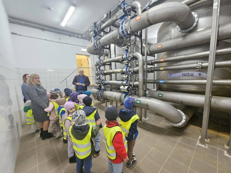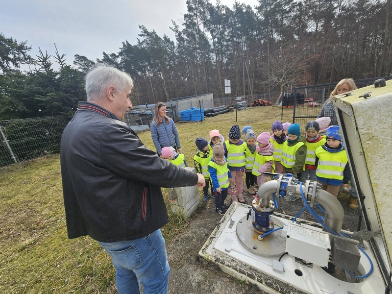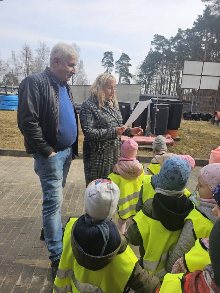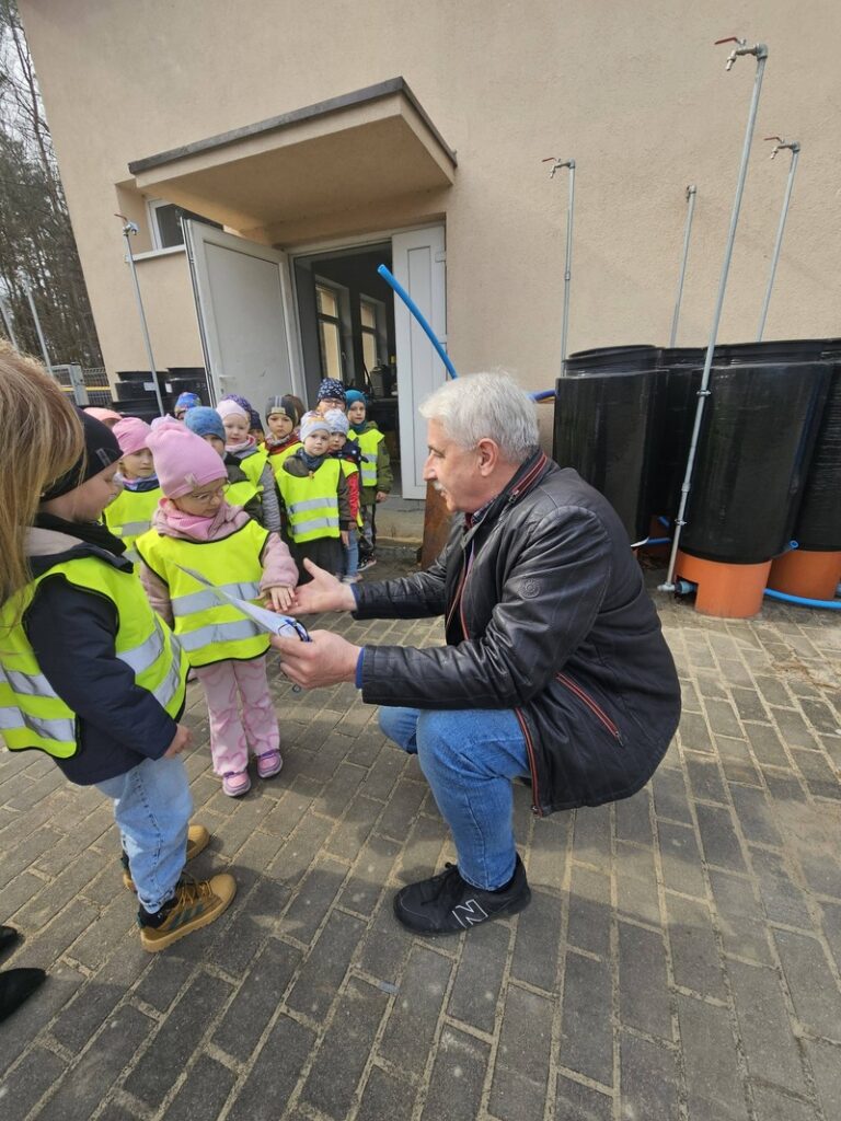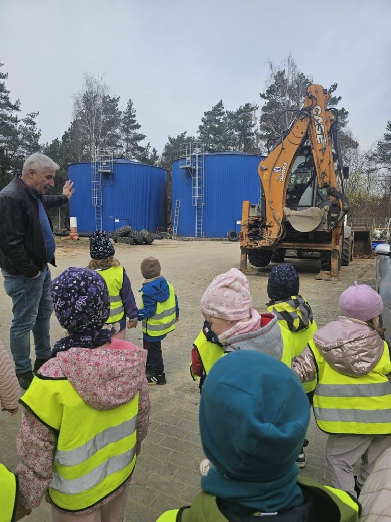 W ramach obchodów Światowego Dnia Wody grupa Elfiki wybrała się na niezwykle ciekawą wycieczkę do Zakładu Gospodarki Komunalnej – wydziału wodociągów. Pan Kierownik serdecznie nas powitał i oprowadził po terenie zakładu. Dzieci miały okazję zobaczyć, gdzie znajdują się studnie, z których pobierana jest woda. Dowiedziały się także, jaki proces musi przejść woda, zanim trafi do naszych domów i popłynie z kranu. Podczas wizyty przedszkolaki z dużym zainteresowaniem oglądały różne urządzenia niezbędne do funkcjonowania całego wydziału. Pan Kierownik w bardzo przystępny i wyczerpujący sposób opowiedział o swojej pracy oraz o tym, jak ważna jest dbałość o czystą wodę. Wycieczka była również doskonałą okazją do preorientacji zawodowej, dzieci mogły poznać zawód związany z gospodarką wodną i zobaczyć, jak wygląda praca „od środka”. To była bardzo wartościowa i pełna wrażeń wyprawa.