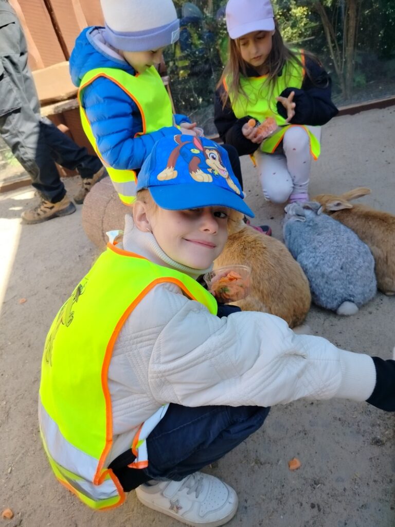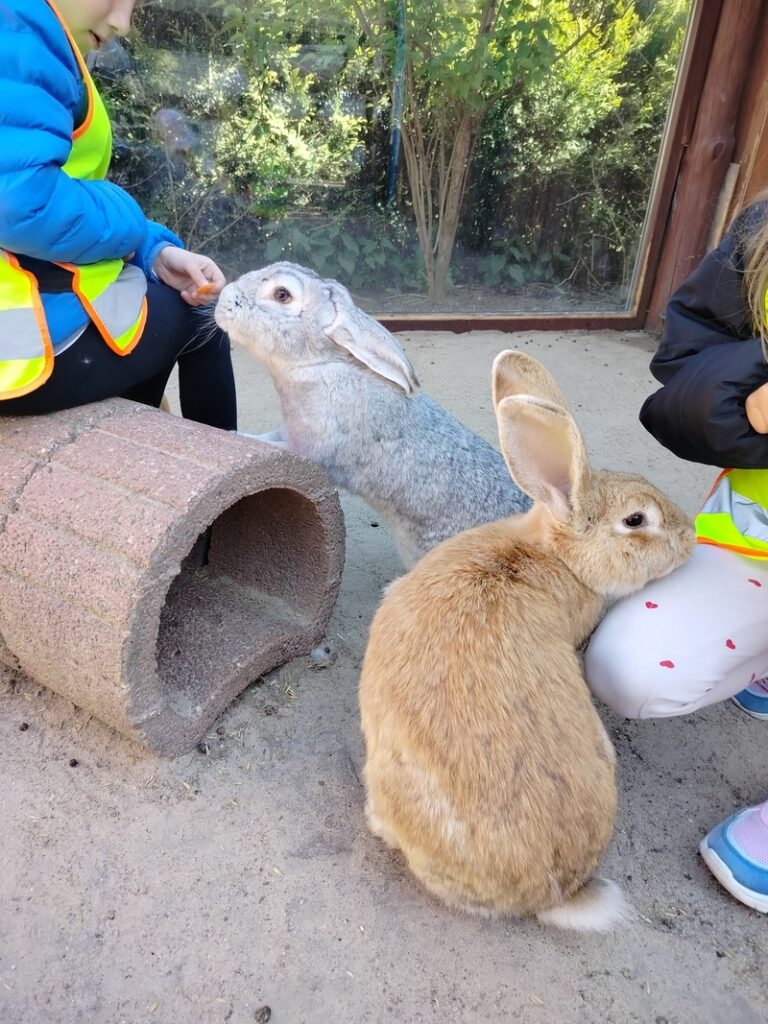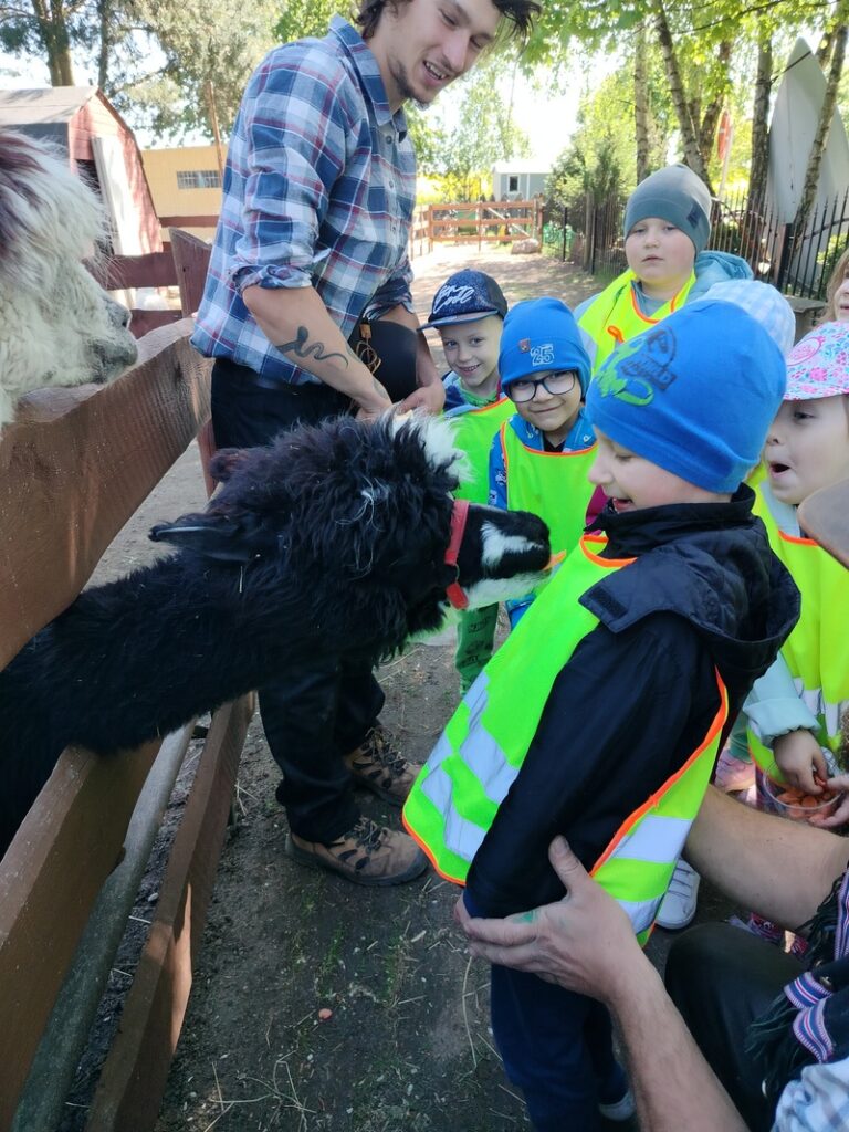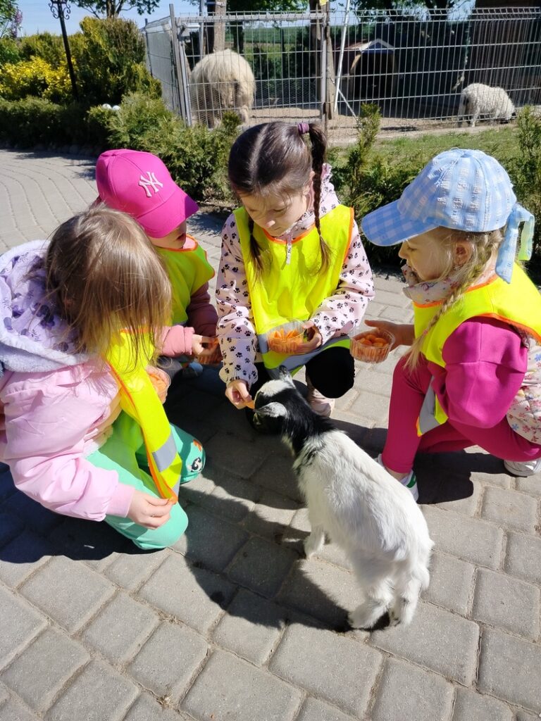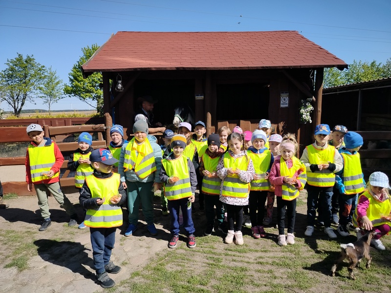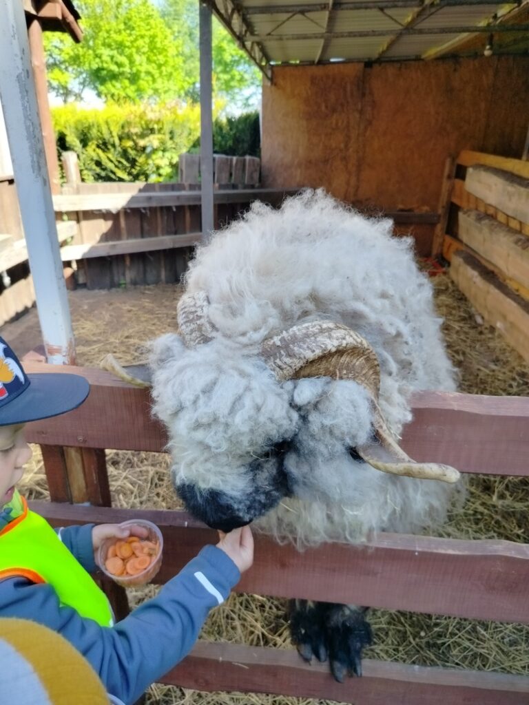 6 maja Tygryski wyruszyły na niezwykłą przygodę do „Ranczo Przytulna Zagroda”. Na miejscu czekały na nie ciekawe warsztaty edukacyjne, dzięki którym poznały życie na wsi oraz zwyczaje zwierząt gospodarskich. Największą radość sprawiło dzieciom karmienie kóz, owiec, królików i innych mieszkańców zagrody. Pełne entuzjazmu odkrywały uroki wiejskiego życia, ciesząc się bliskim kontaktem z naturą. To był dzień pełen radości i nowych doświadczeń! Tygryski wróciły do przedszkola z uśmiechem na twarzy, bogatsze o piękne wspomnienia i miłość do zwierząt.