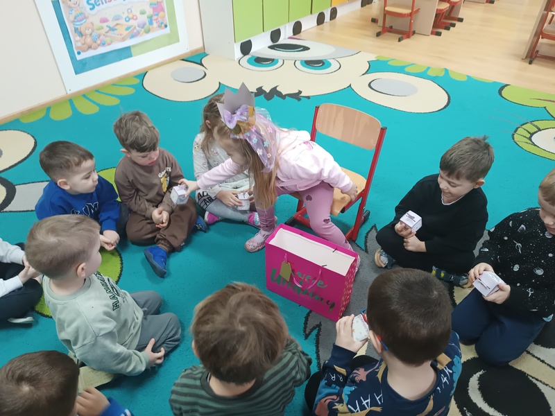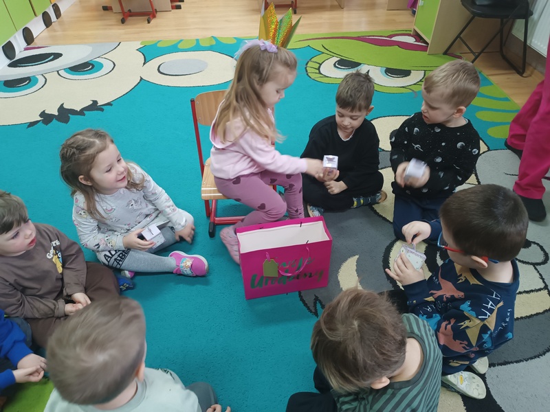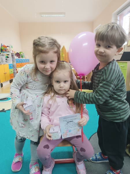 W naszej grupie zrobiło się dziś naprawdę uroczyście! Swoje urodziny świętowała Julka, a my zadbaliśmy o to, by ten dzień był dla niej wyjątkowy — było głośne „Sto lat”, mnóstwo życzeń i dużo dobrej energii. Julka przygotowała też dla wszystkich niespodzianki, które sprawiły dzieciom ogromną radość. Sto lat, Julko!