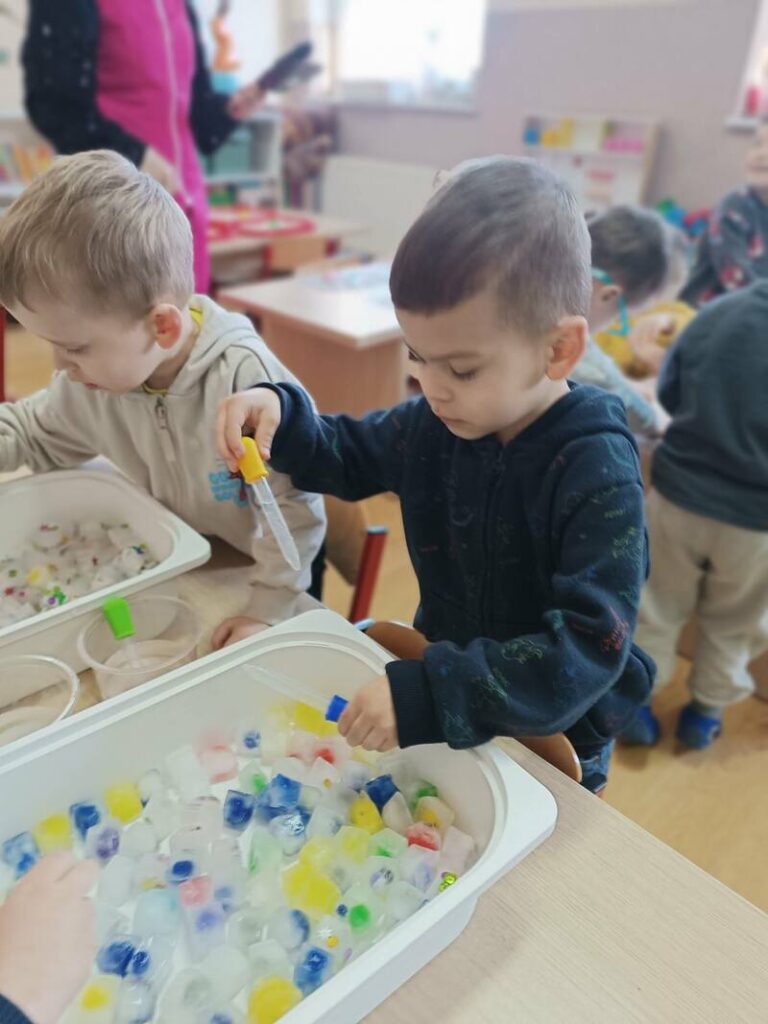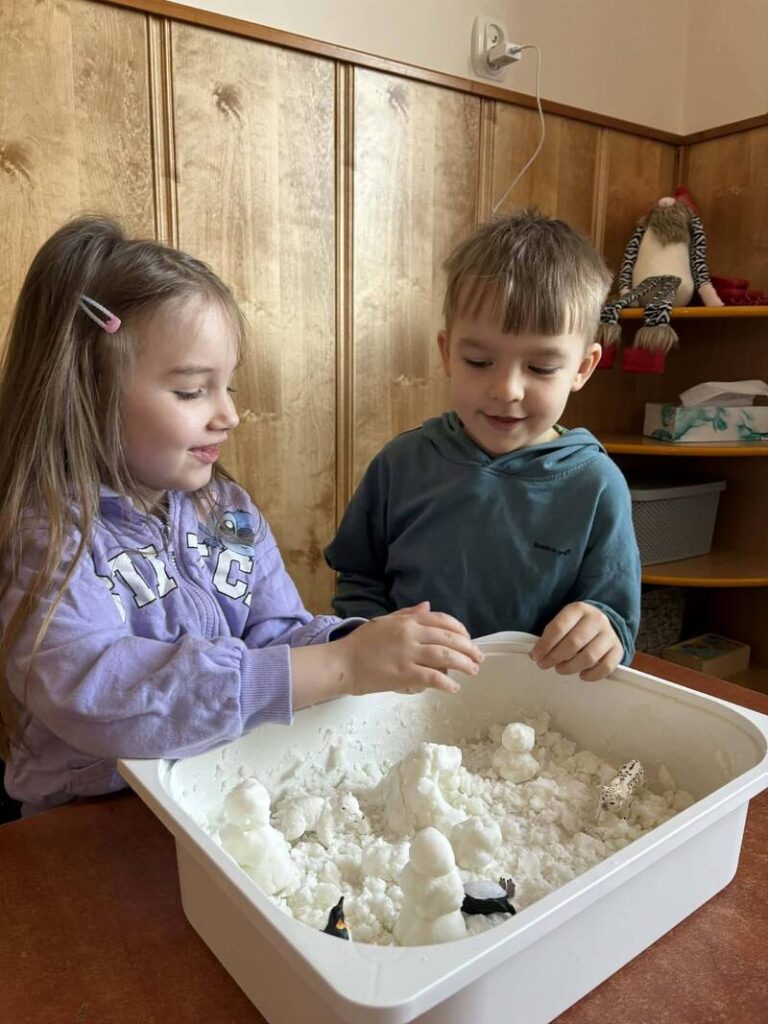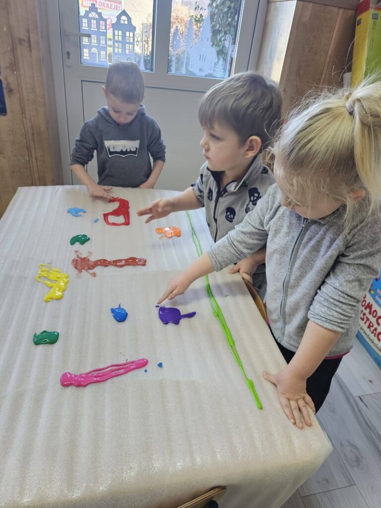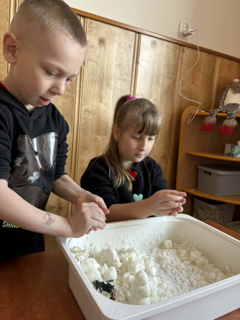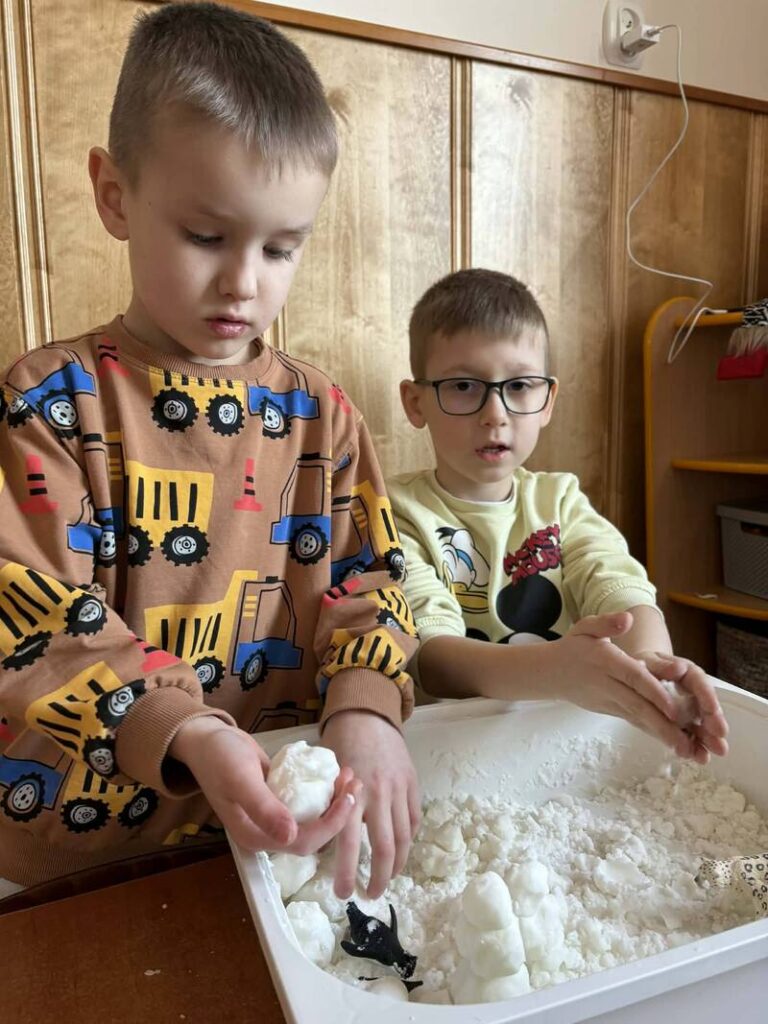 Podczas zajęć dzieci mają okazję doświadczać różnorodnych faktur, struktur i materiałów – od miękkich i sypkich, po mokre i elastyczne.