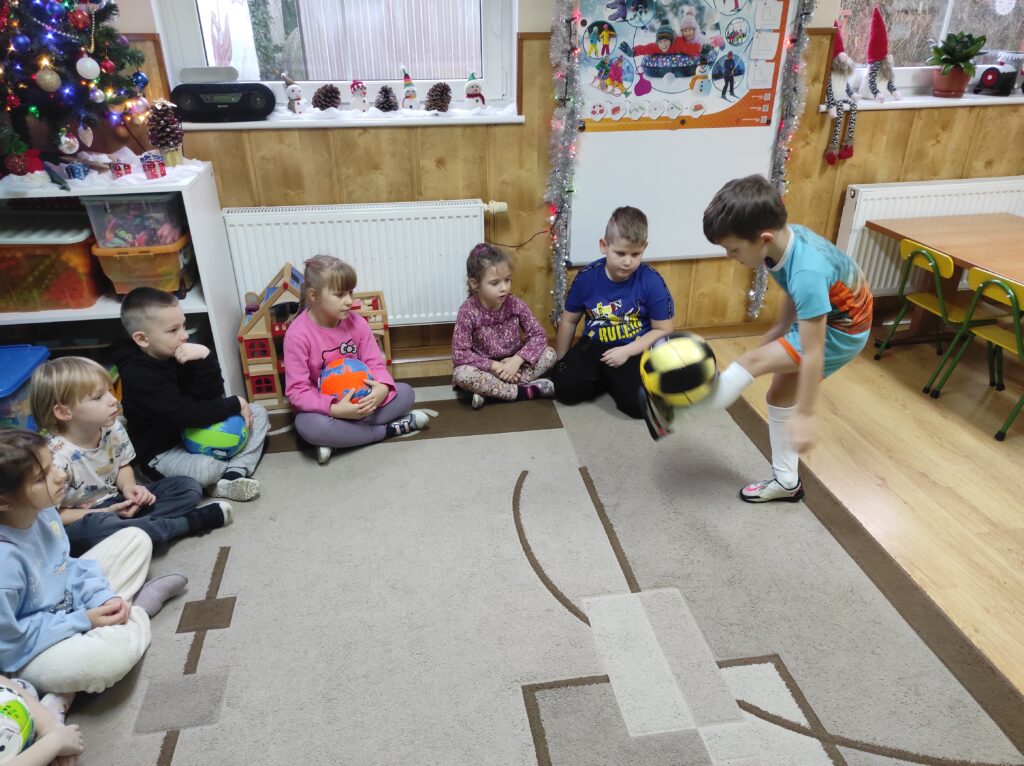 Światowy Dzień Piłki Nożnej obchodziliśmy 10 grudnia. Pasją przedszkolnego kolegi Nataniela jest właśnie piłka nożna. Z ogromnym zaangażowaniem zaprezentował nam swoje futbolowe umiejętności i talent oraz zapoznał z elementarnymi zasadami te zespołowej gry. Było ciekawie i wesoło.