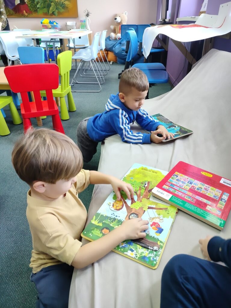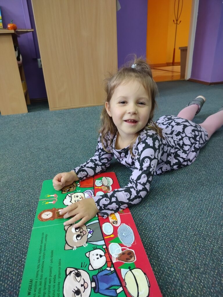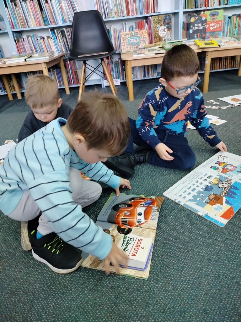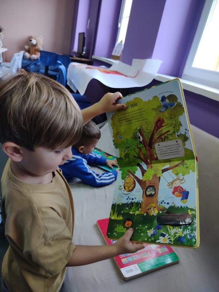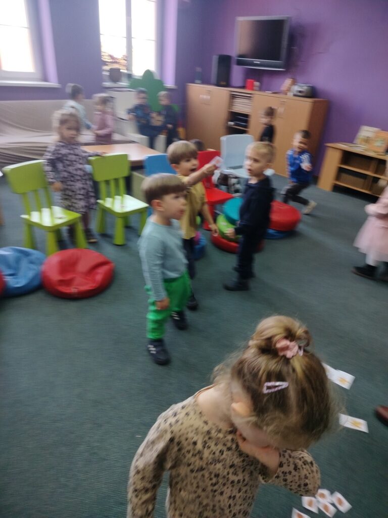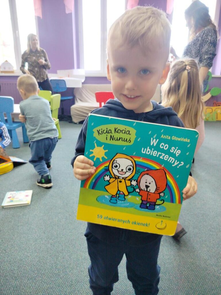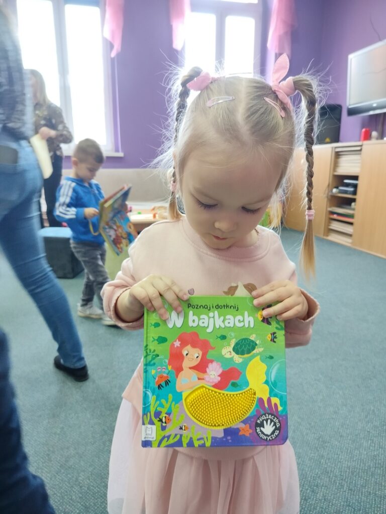 Nasze Zajączki odbyły swoją pierwszą wizytę w bibliotece – pełną ciekawości, odkryć i radości. Dzieci z zainteresowaniem poznawały książeczki, oglądały ilustracje i słuchały opowieści, które pobudzały wyobraźnię. Podczas zajęć szukały ukrytych darów jesieni – liści, kasztanów, żołędzi – ucząc się uważności i spostrzegawczości. Na zakończenie wykonały jesienną pracę plastyczną, używając do malowania swoich paluszków. Było kolorowo, twórczo i bardzo wesoło! To była wyjątkowa przygoda, która rozbudziła miłość do książek i pokazała, że biblioteka to miejsce pełne magii.