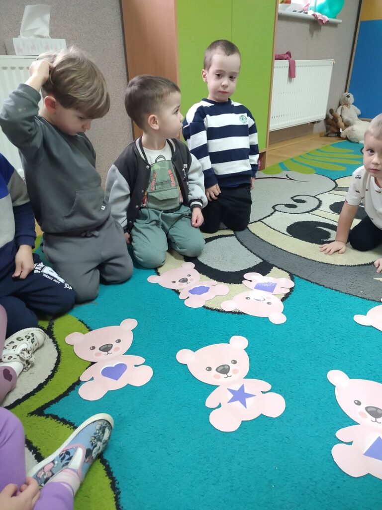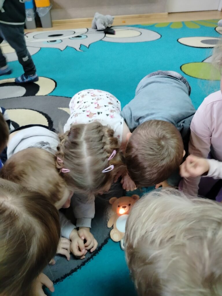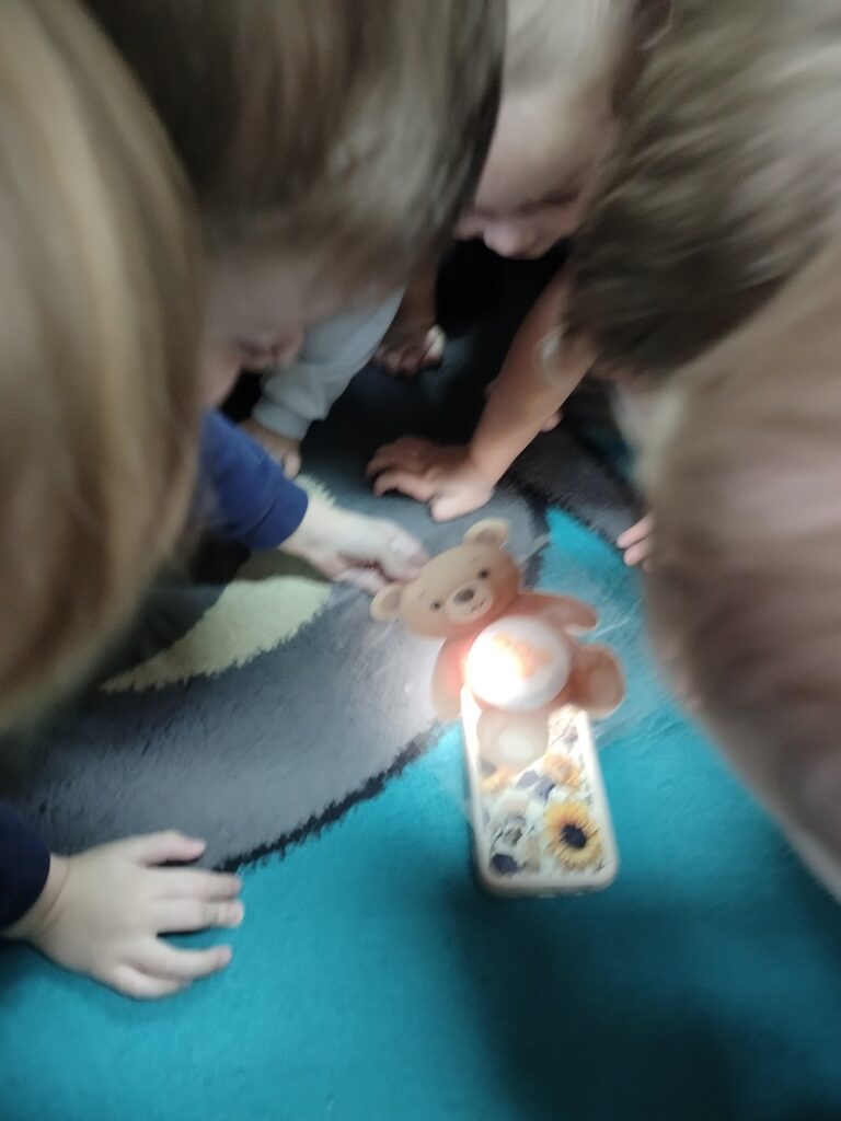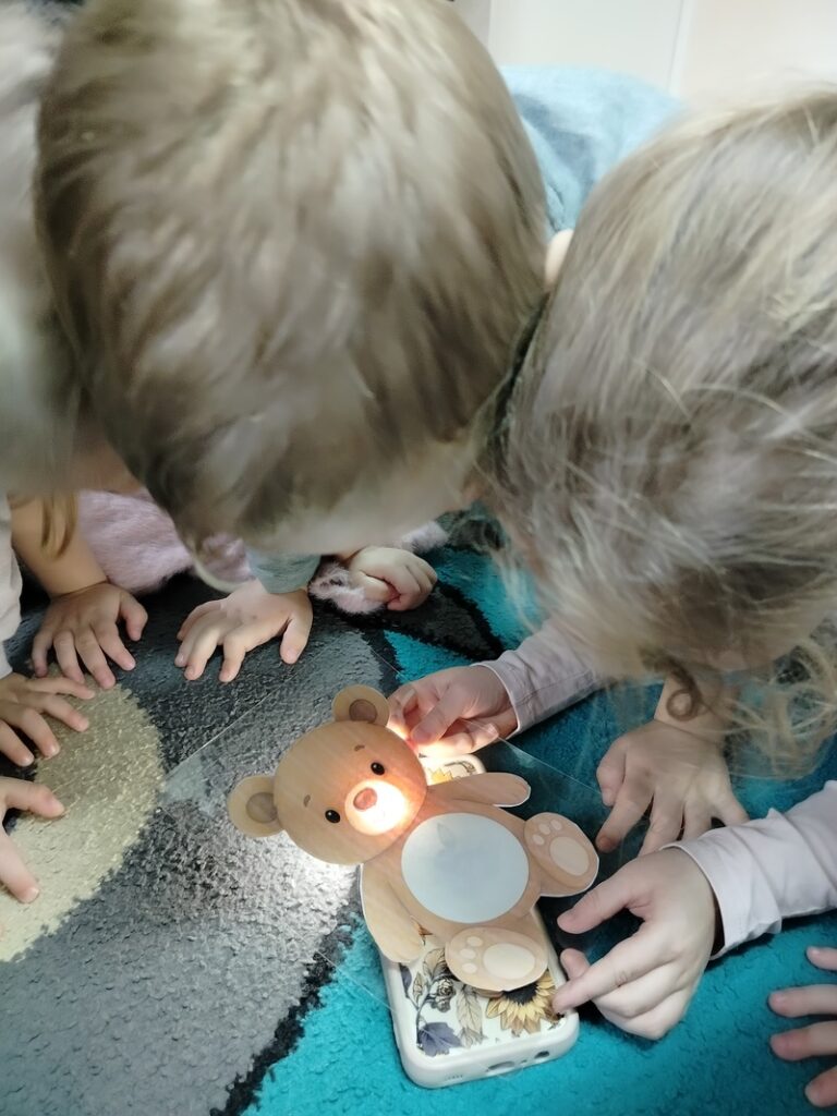 25 listopada grupa Zajączki obchodziła w swojej sali Dzień Pluszowego Misia. Dzieci przyszły ze swoimi ulubionymi pluszakami, które towarzyszyły im przez cały dzień. W sali panowała radosna atmosfera – były tańce, wspólne śpiewanie „Sto lat” oraz różne zadania związane z misiami. Największą atrakcją okazała się zabawa z latarką, podczas której dzieci odkrywały, co miś kryje w brzuszku. To wyjątkowe święto sprawiło Zajączkom wiele radości i na długo pozostanie w ich pamięci.