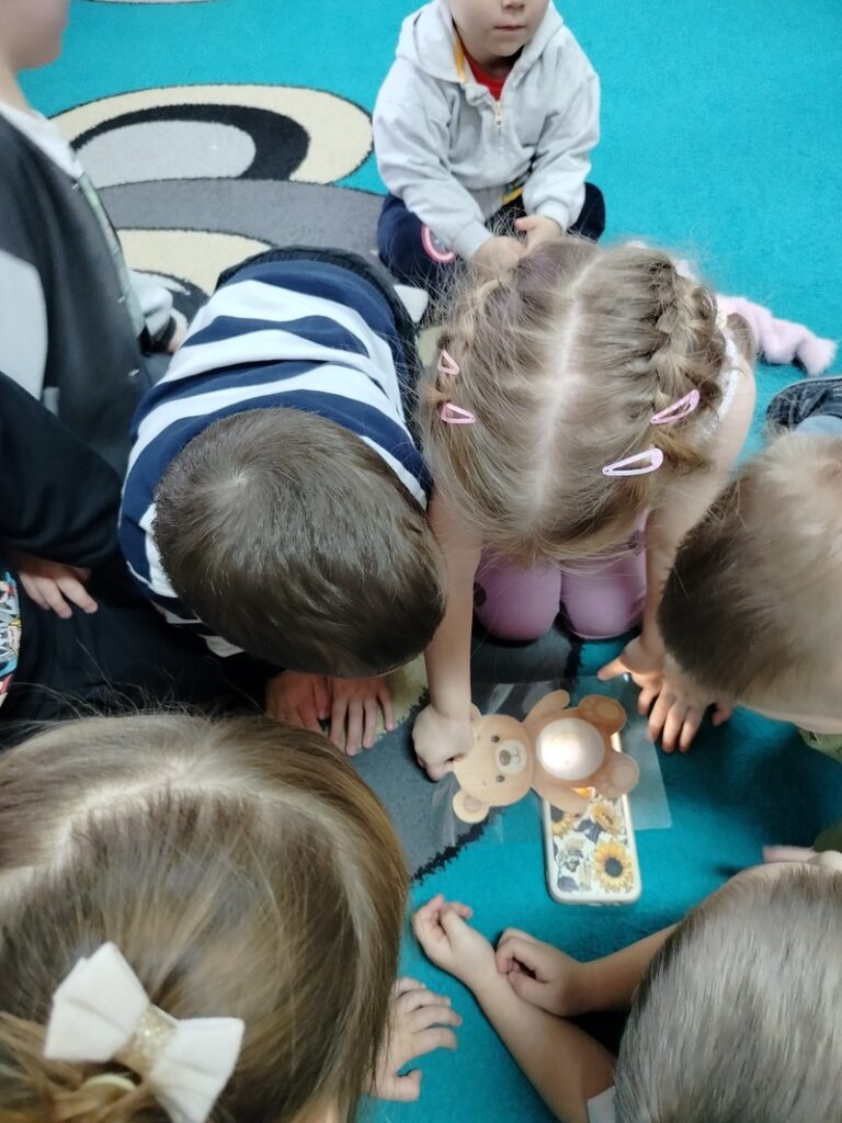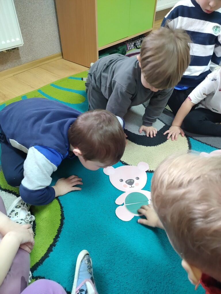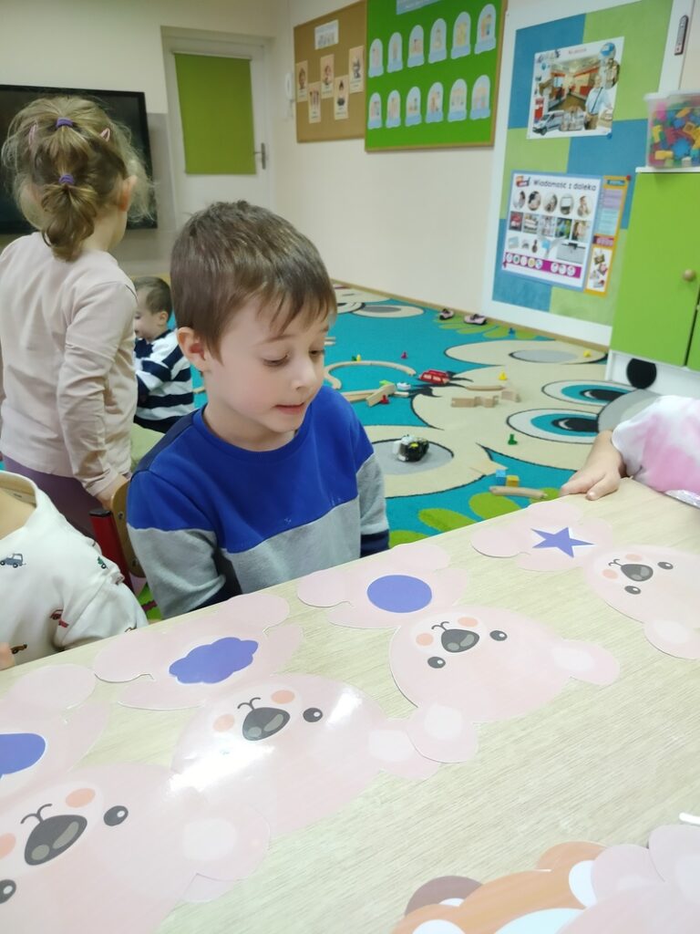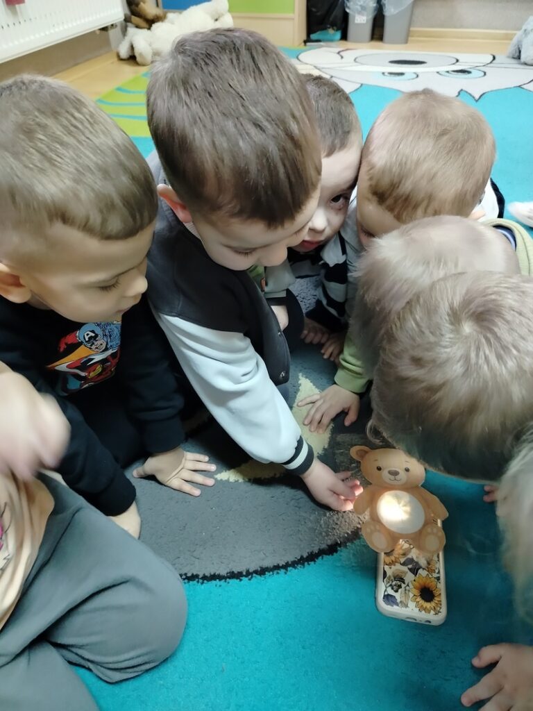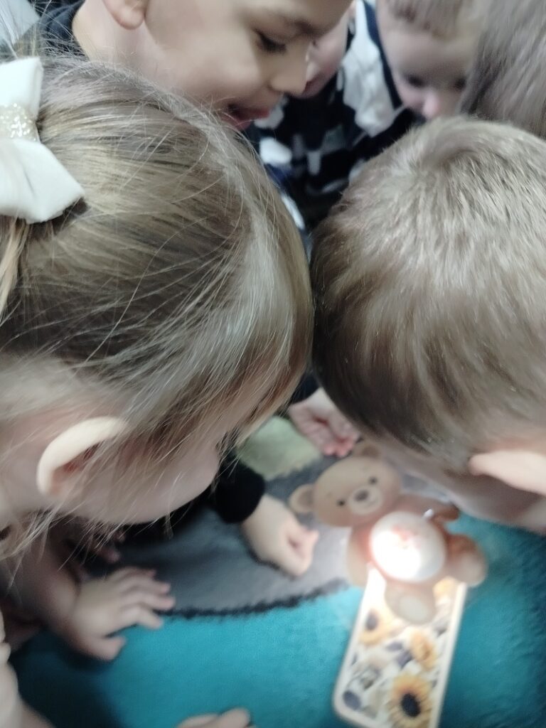 25 listopada grupa Zajączki obchodziła w swojej sali Dzień Pluszowego Misia. Dzieci przyszły ze swoimi ulubionymi pluszakami, które towarzyszyły im przez cały dzień. W sali panowała radosna atmosfera – były tańce, wspólne śpiewanie „Sto lat” oraz różne zadania związane z misiami. Największą atrakcją okazała się zabawa z latarką, podczas której dzieci odkrywały, co miś kryje w brzuszku. To wyjątkowe święto sprawiło Zajączkom wiele radości i na długo pozostanie w ich pamięci.