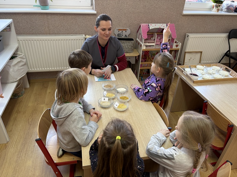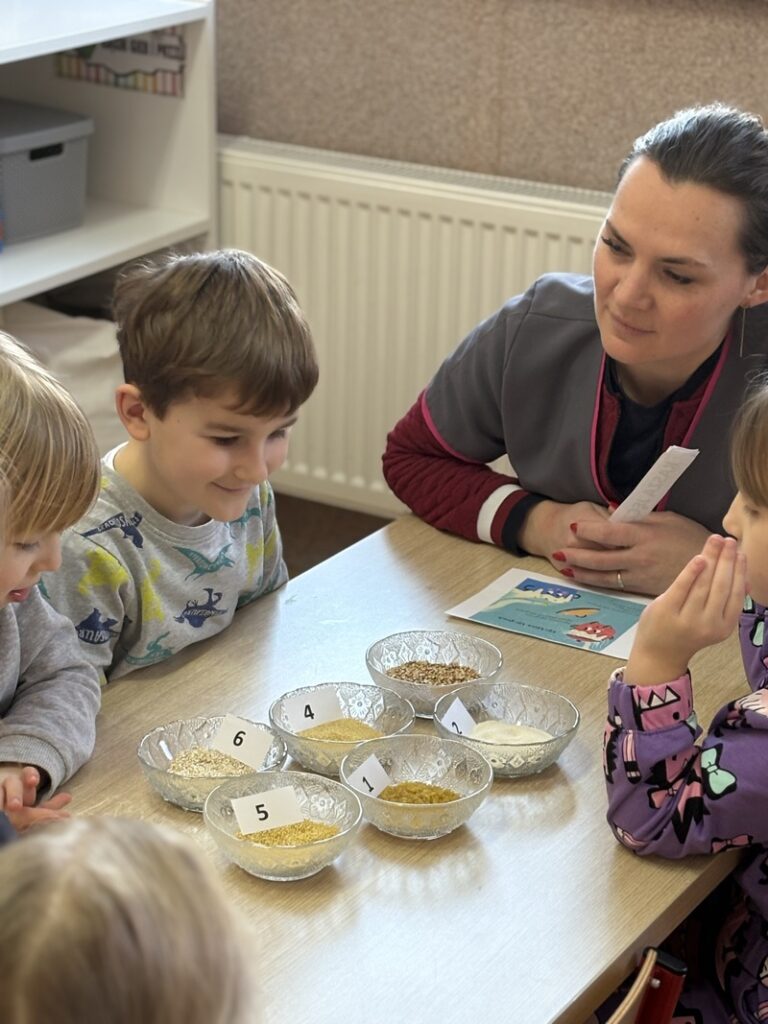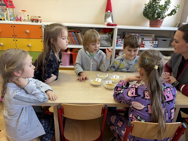 W minionym tygodniu Zajączki i Żabki uczestniczyły w zajęciach kulinarnych, podczas których poznawały różne rodzaje kasz. Dzieci oglądały, dotykały i porównywały różne kasze. Dowiedziały się, skąd pochodzą i jakie mają wartości odżywcze.