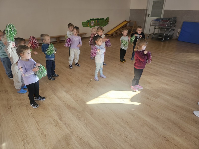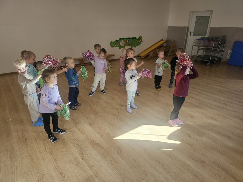 Nasze pierwsze zajęcia ruchowe z elementami Zumby w Elfikach. Dzieci z ochotą i radością uczestniczyły w zajęciach.