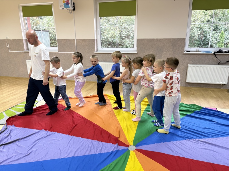 Tygryski wzięły udział w zajęciach ruchowych „Ziomkolandia”. Dzieci z radością uczestniczyły w aktywnościach, rozwijających sprawność, koordynację i współpracę w grupie.
