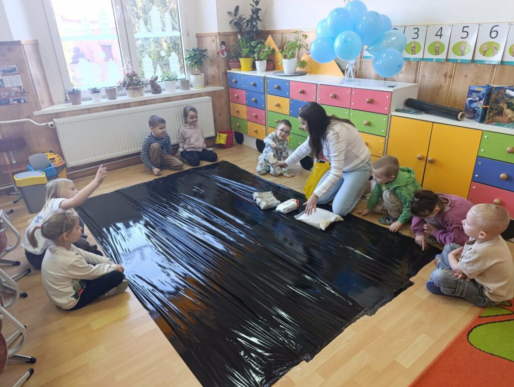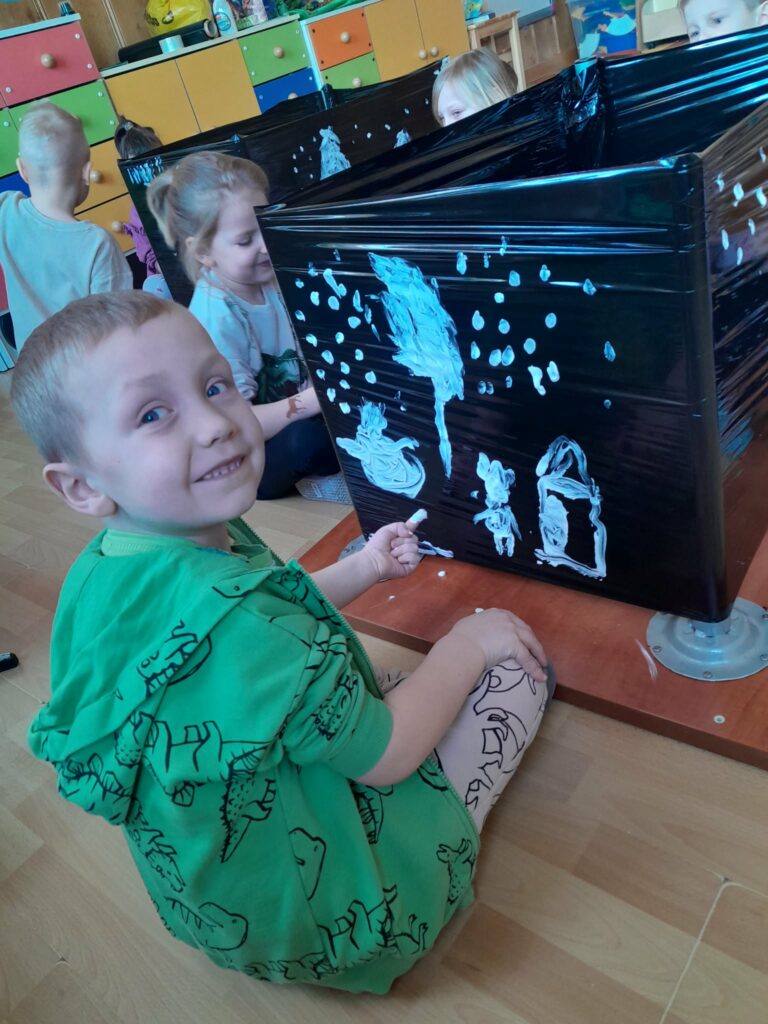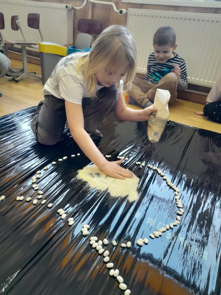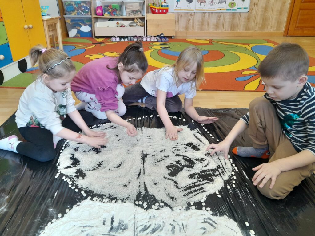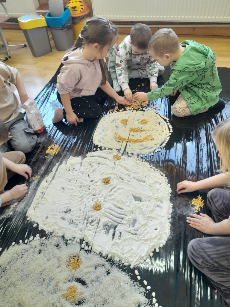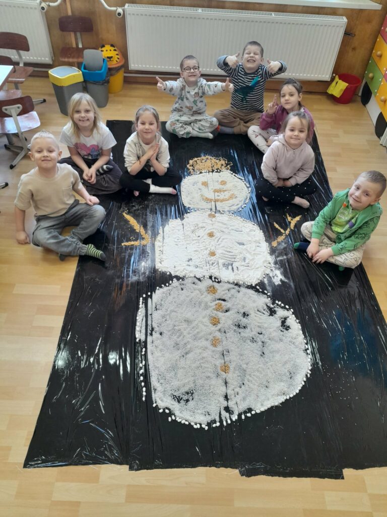 W naszej grupie odbyły się zimowe zajęcia sensoryczne, podczas których dzieci miały okazję rozwijać swoje zmysły poprzez różnorodne zabawy i doświadczenia. powstał między innymi zimowy sensoryczny bałwanek wykonany z mąki, kaszy, ryżu fasoli oraz grochu. Dzieci miały też okazję malować farbami na folii. Zabawy sensoryczne sprawiły dzieciom wiele radości, a jednocześnie wspierały rozwój motoryki małej, koordynacji oraz wyobraźni. Zajęcia przebiegały w miłej i radosnej atmosferze, a przedszkolaki z dużym zaangażowaniem uczestniczyły we wszystkich proponowanych aktywnościach