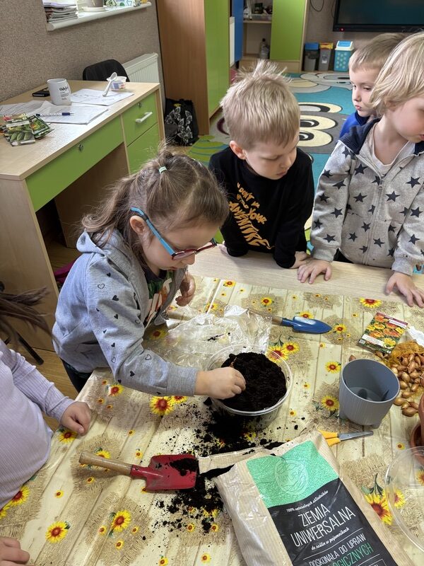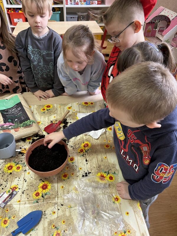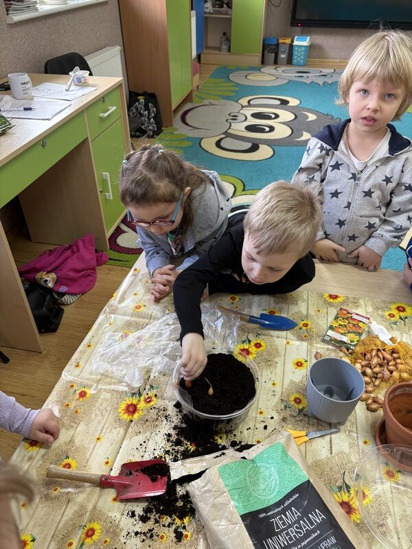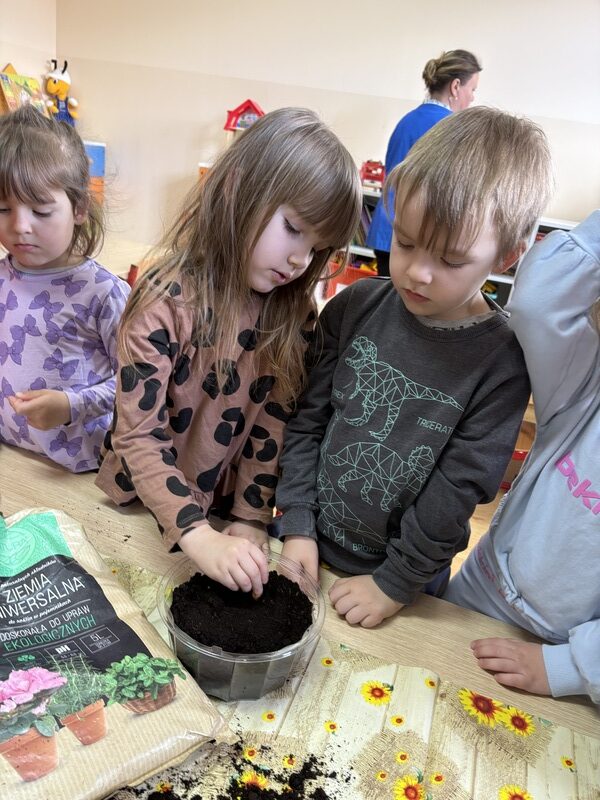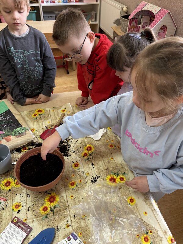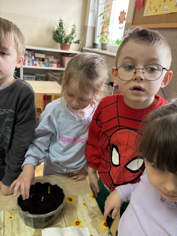 Zajączki założyły w sali wiosenny ogródek! Dzieci zasiały nasiona, posadziły rośliny a teraz z radością i niecierpliwością będą wyczekiwały pierwszych zielonych listków. Każdego dnia będą dbać o swój ogródek, ucząc się troski o przyrodę.