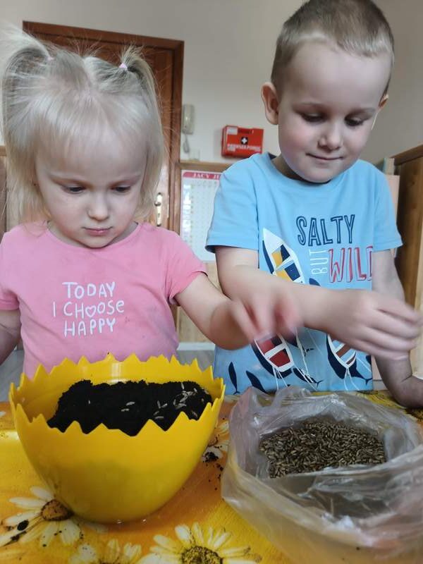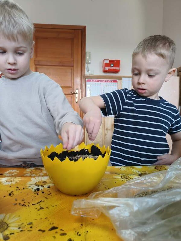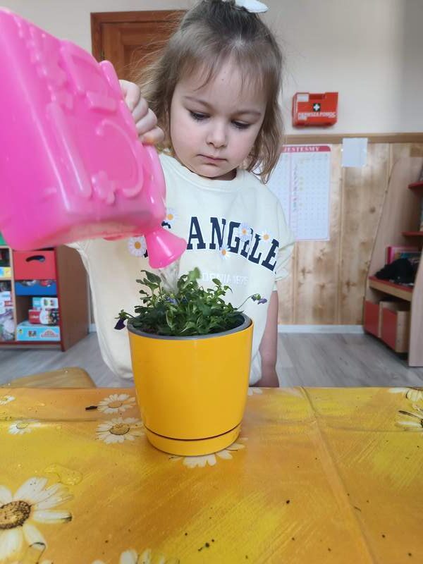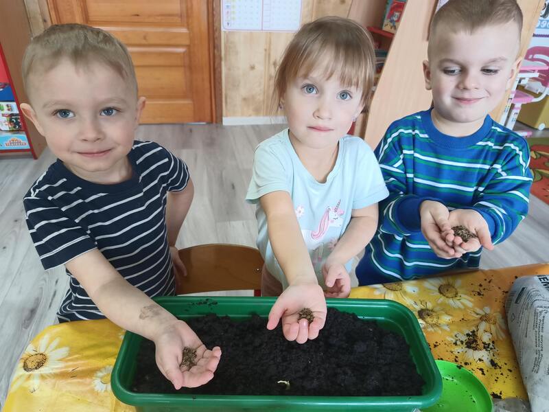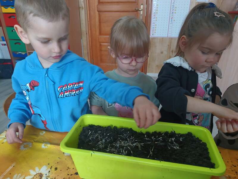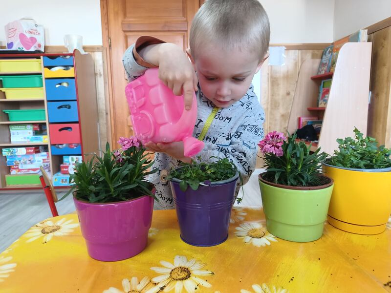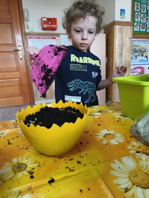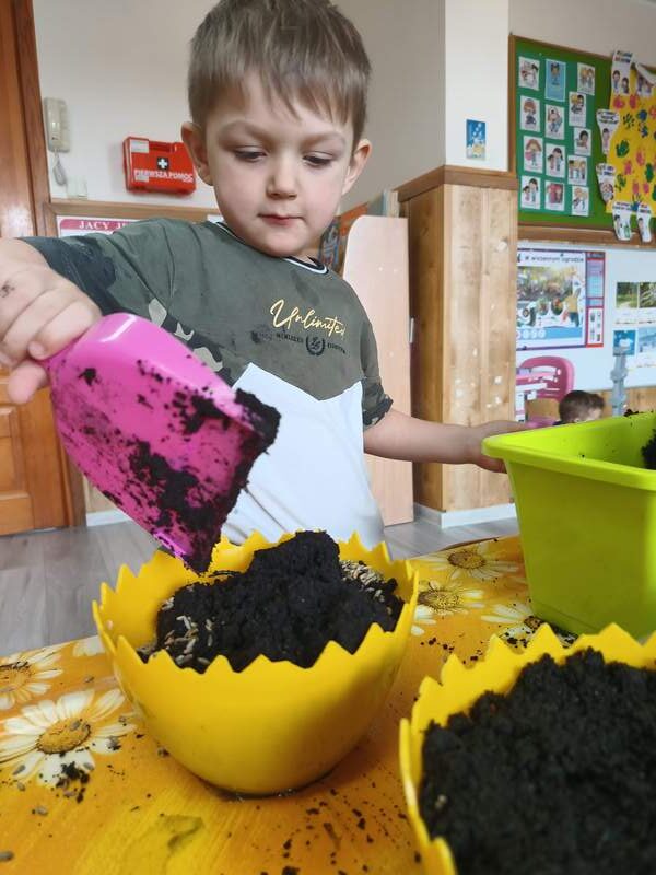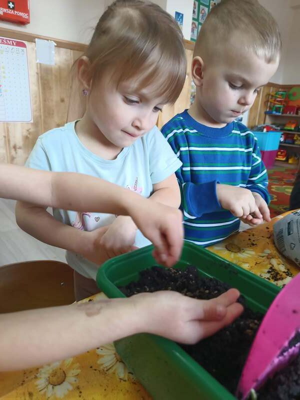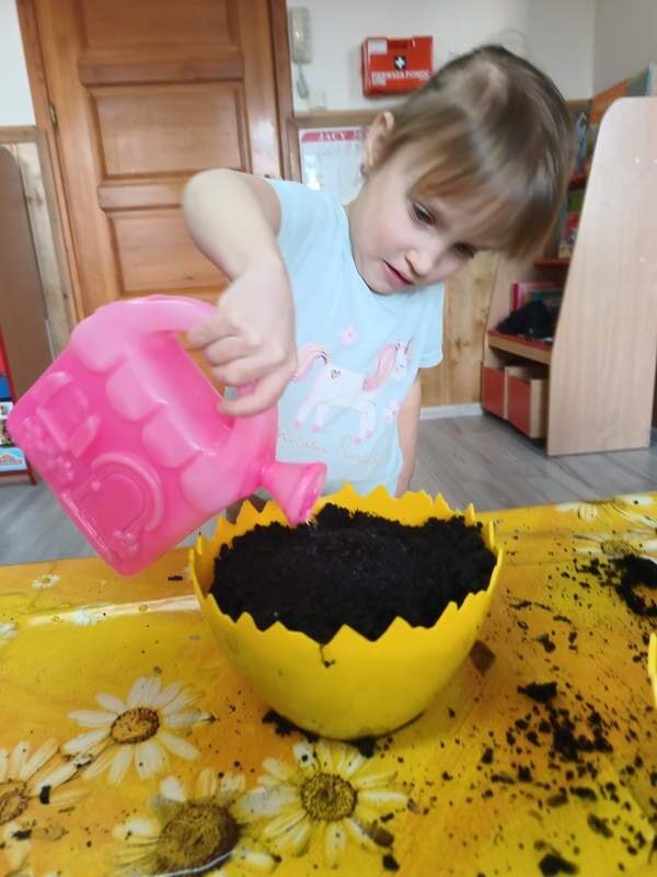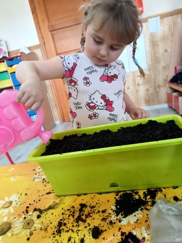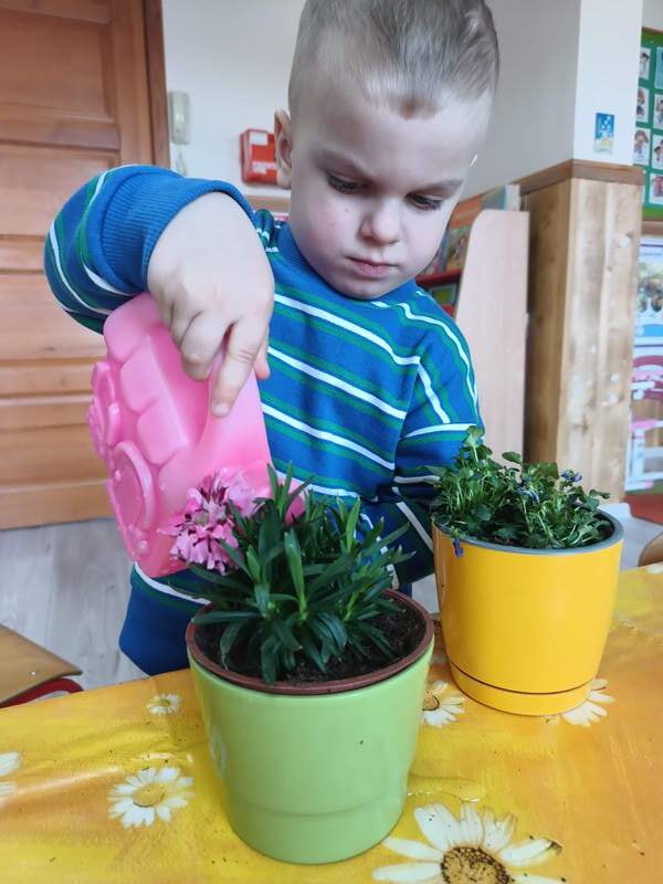 Nasze najmłodsze przedszkolaki sadziły kwiatki i siały nasiona w doniczkach ucząc się podstaw ogrodnictwa, odpowiedzialności i cierpliwości. Podczas wspólnej pracy rozwijały swoje zmysły, a także dowiedziały się co jest potrzebne do wzrostu roślin i jak ważna jest troska o naturę.