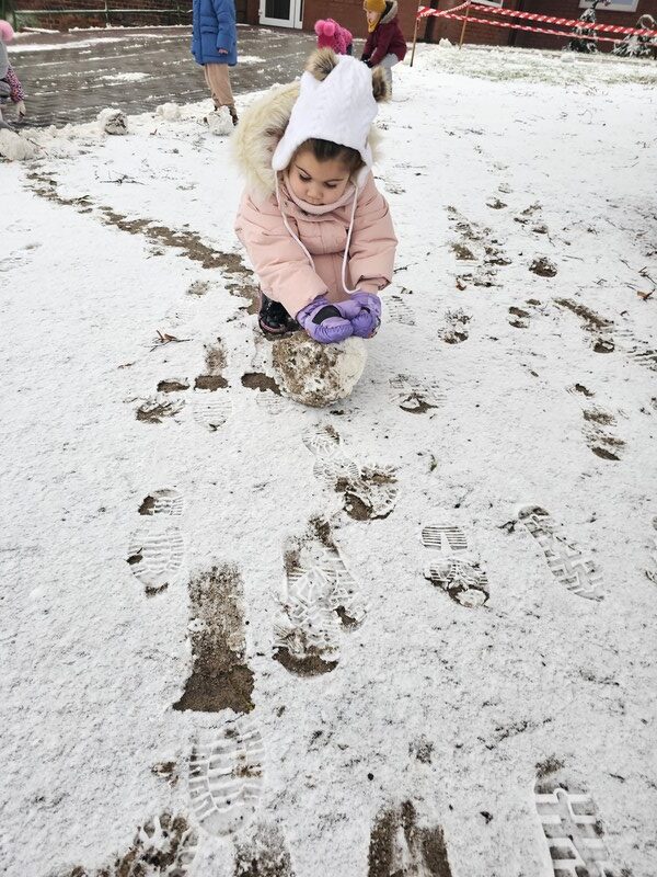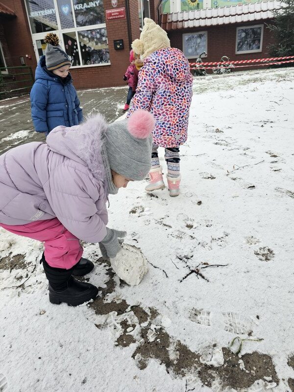 Elfiki 3-latki w pełni cieszyły się zimową aurą! 🌨️ Dzieci spędziły czas na świeżym powietrzu, bawiąc się na śniegu – lepiły bałwanki, rzucały śnieżkami i szukały śladów zwierząt. 🦊🐾