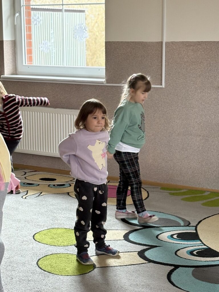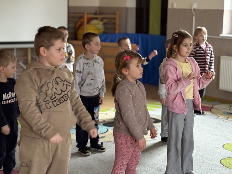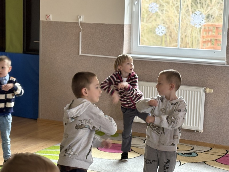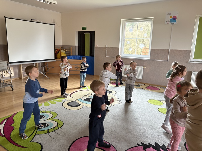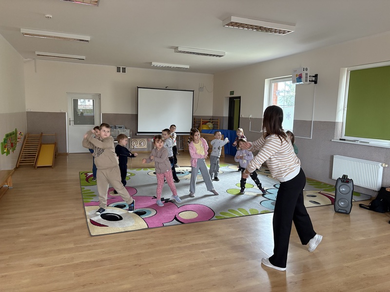 Zajączki i Żabki uczestniczyły w zajęciach ruchowych Zumba Kids, podczas których świetnie się bawiły, tańcząc i ucząc się prostych układów choreograficznych. Pełne energii rytmy i dynamiczne ruchy sprawiły, że dzieci aktywnie spędziły czas, rozwijając koordynację i rytmikę.
